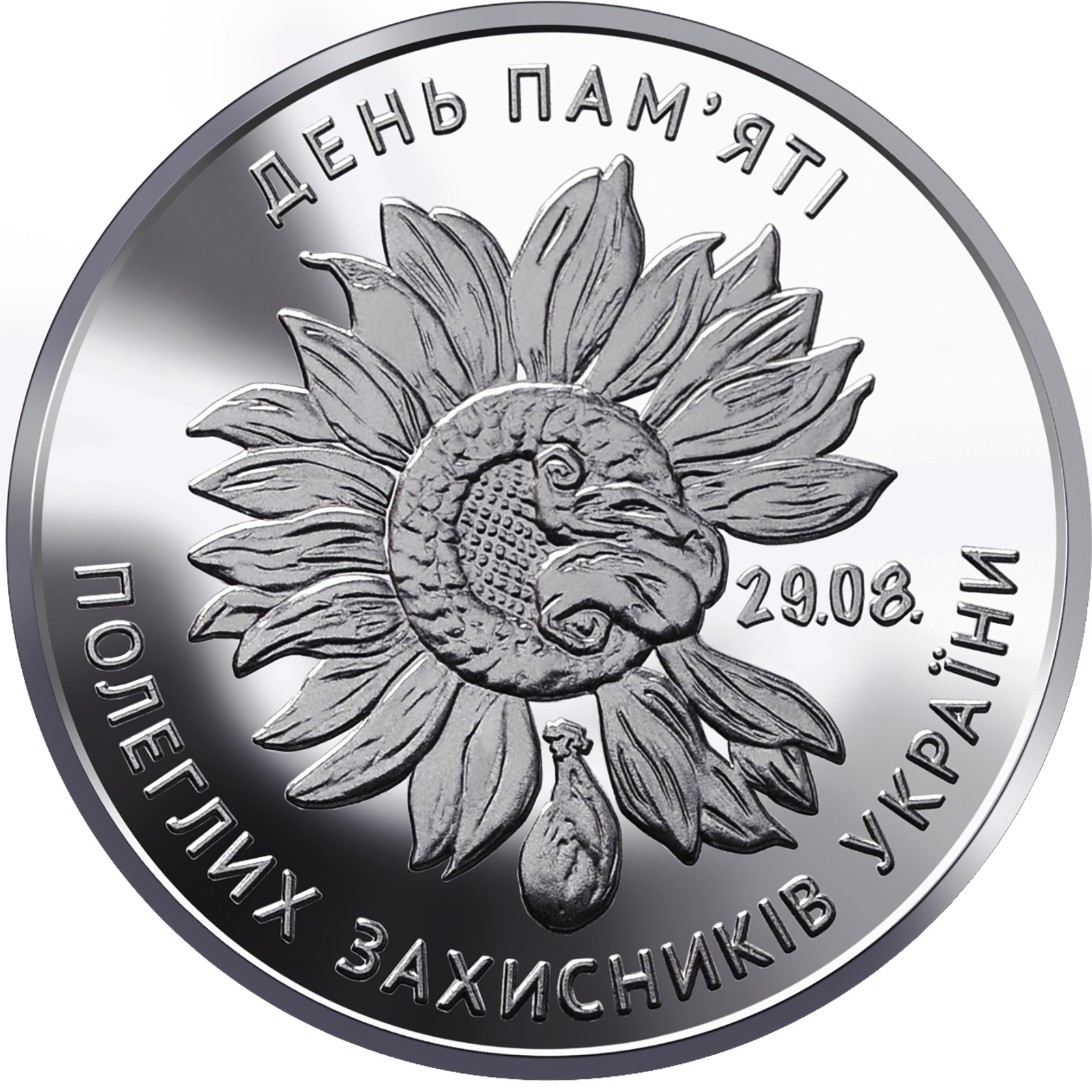 На реверсі монети зображено велику квітку соняшника, що символізує Україну: унизу пелюстка-сльоза з тамгою – Крим, праворуч дві зігнуті пелюстки – Донецька і Луганська області; написи: 29.08. (праворуч); по колу: ДЕНЬ ПАМ’ЯТІ (угорі), ПОЛЕГЛИХ ЗАХИСНИКІВ УКРАЇНИ (унизу).